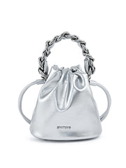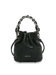Smting | Small Leather Crossbody Bucket Bag with Leather Woven Chain Handle