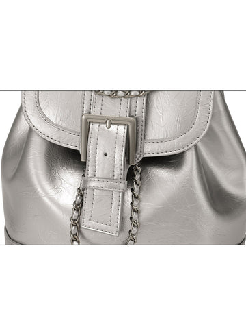 This backpack is made of cow split leather. The appearance leans towards a bucket bag shape, with a capacity that meets daily needs. The color scheme full of futuristic technology is extremely eye-catching, with a drawstring closure design, forming natural and interesting wrinkles that are both beautiful and convenient! The interweaving of chains and leather straps enhances the comfort of the backpack to the highest level.