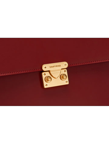 This structured leather bag in a delicious cherry red is sure to make you the center of attention in any room. The faux flap and golden hardware give this purse a formal look while the spacious inner makes it a great everyday addition to any wardrobe.